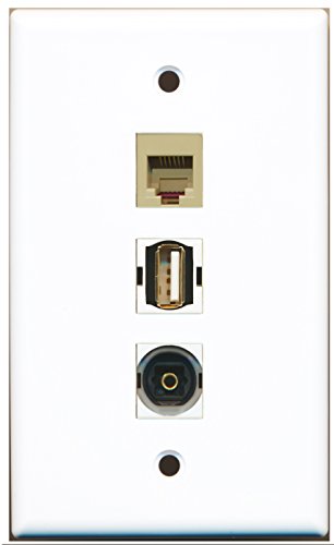RiteAV - 1 Port USB A-A and 1 Port Phone RJ11 RJ12 Beige and 1 Port Toslink Wall Plate