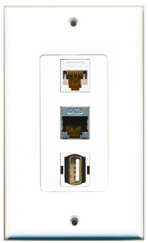 RiteAV - 1 Port USB A-A and 1 Port Shielded Cat6 Ethernet and 1 Port Cat6 Ethernet White Decorative Wall Plate Decorative
