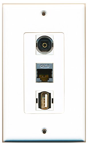 RiteAV - 1 Port USB A-A and 1 Port Shielded Cat6 Ethernet and 1 Port Toslink Decorative Wall Plate Decorative