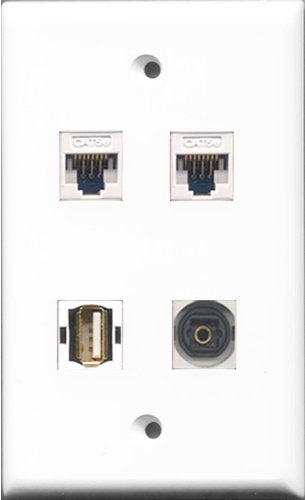 RiteAV - 1 Port USB A-A and 1 Port Toslink 2 Port Cat5e Ethernet White Wall Plate