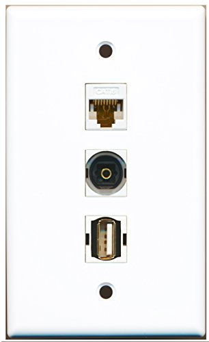 RiteAV - 1 Port USB A-A and 1 Port Toslink and 1 Port Cat6 Ethernet White Wall Plate