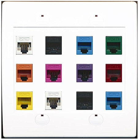 RiteAV 12 Port Mixed Colors Wall Plate White Quick Install