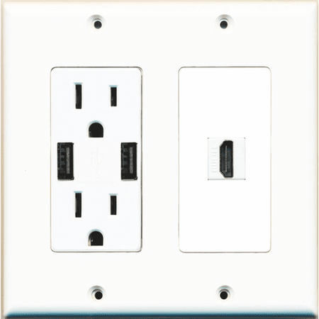 RiteAV 15 Amp 125V Power Outlet (2 USB Charger Receptacle) 1 Hdmi Wall Plate White