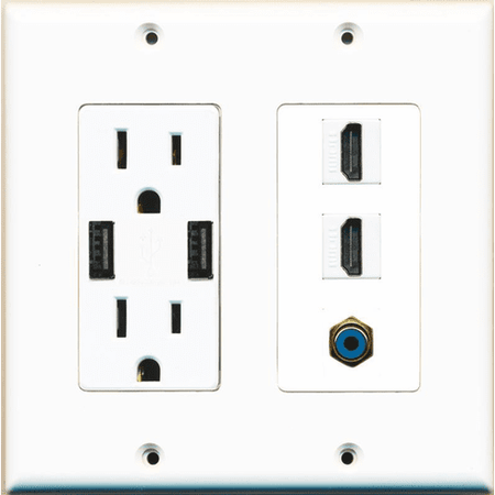 RiteAV 15 Amp 125V Power Outlet (2 USB Charger Receptacle) 2 Hdmi RCA Wall Plate White