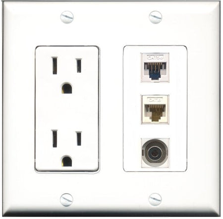 RiteAV - 15 Amp Power Outlet 1 Port 3.5mm 1 Port Cat5e Ethernet White 1 Port Cat6 Ethernet Ethernet White Decorative Wall Plate