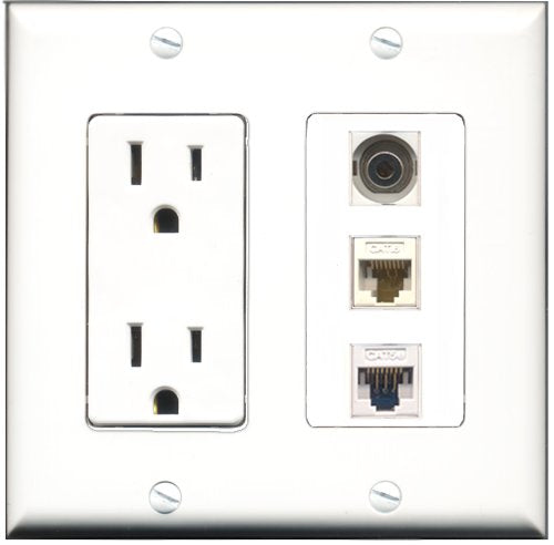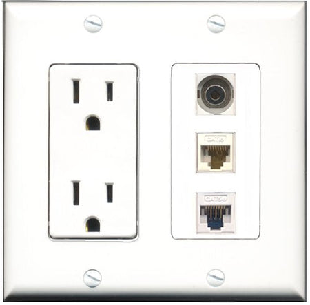 RiteAV - 15 Amp Power Outlet 1 Port 3.5mm 1 Port Cat5e Ethernet White 1 Port Cat6 Ethernet Ethernet White Decorative Wall Plate