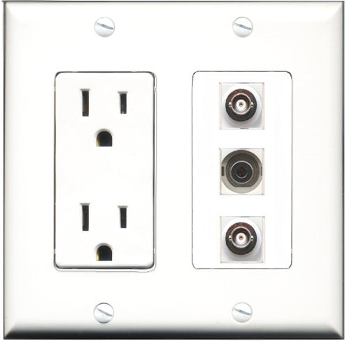 RiteAV - 15 Amp Power Outlet 1 Port 3.5mm 2 Port BNC Decorative Wall Plate