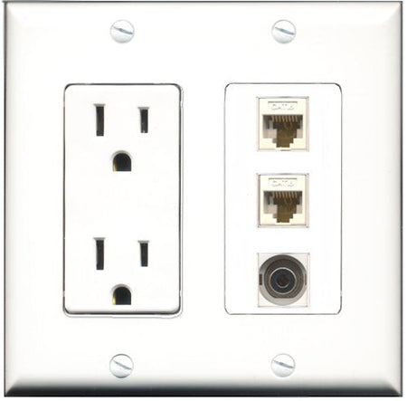 RiteAV - 15 Amp Power Outlet 1 Port 3.5mm 2 Port Cat6 Ethernet Ethernet White Decorative Wall Plate