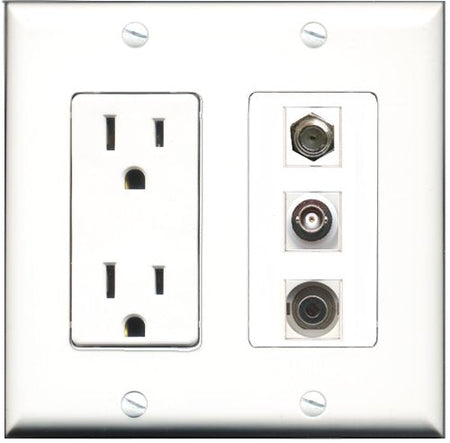 RiteAV - 15 Amp Power Outlet 1 Port Coax 1 Port 3.5mm 1 Port BNC Decorative Wall Plate