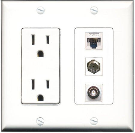 RiteAV - 15 Amp Power Outlet 1 Port Coax 1 Port BNC 1 Port Cat5e Ethernet White Decorative Wall Plate