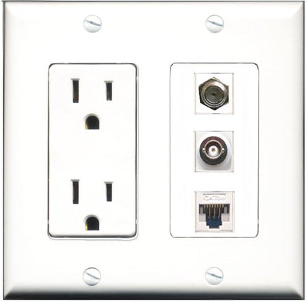 RiteAV - 15 Amp Power Outlet 1 Port Coax 1 Port BNC 1 Port Cat5e Ethernet White Decorative Wall Plate