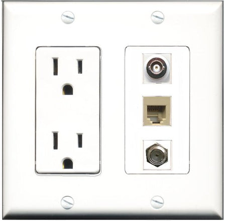 RiteAV - 15 Amp Power Outlet 1 Port Coax 1 Port Phone Beige 1 Port BNC Decorative Wall Plate