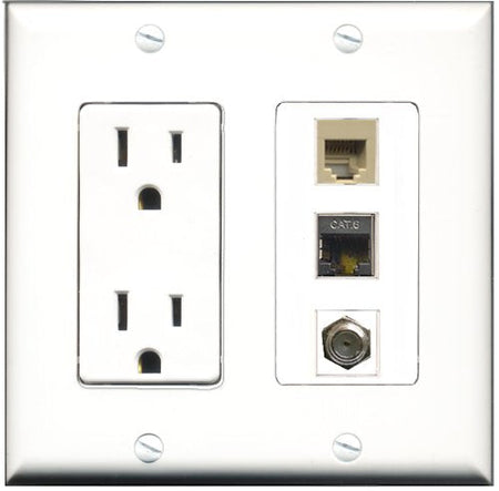 RiteAV - 15 Amp Power Outlet 1 Port Coax 1 Port Phone Beige 1 Port Shielded Cat6 Ethernet Ethernet Decorative Wall Plate