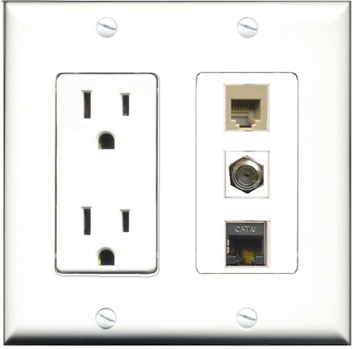 RiteAV - 15 Amp Power Outlet 1 Port Coax 1 Port Phone Beige 1 Port Shielded Cat6 Ethernet Ethernet Decorative Wall Plate