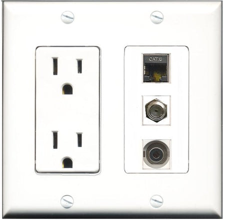 RiteAV - 15 Amp Power Outlet 1 Port Coax 1 Port Shielded Cat6 Ethernet Ethernet 1 Port 3.5mm Decorative Wall Plate
