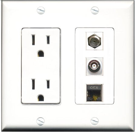 RiteAV - 15 Amp Power Outlet 1 Port Coax 1 Port Shielded Cat6 Ethernet Ethernet 1 Port BNC Decorative Wall Plate