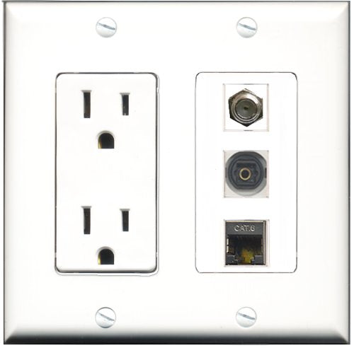 RiteAV - 15 Amp Power Outlet 1 Port Coax 1 Port Shielded Cat6 Ethernet Ethernet 1 Port Toslink Decorative Wall Plate