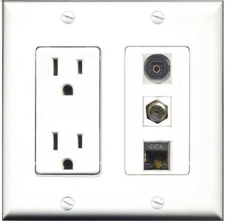 RiteAV - 15 Amp Power Outlet 1 Port Coax 1 Port Shielded Cat6 Ethernet Ethernet 1 Port Toslink Decorative Wall Plate