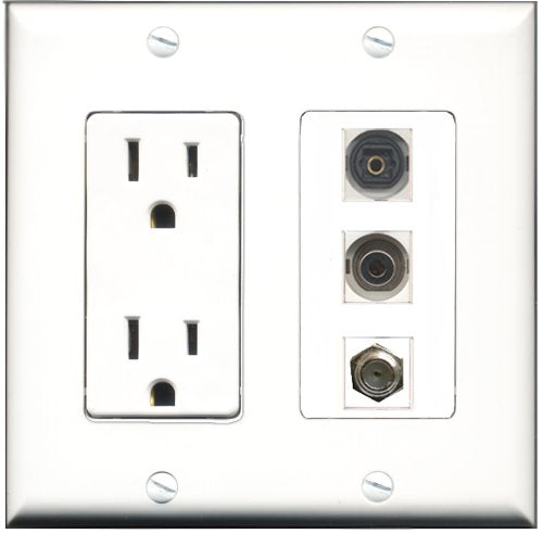 RiteAV - 15 Amp Power Outlet 1 Port Coax 1 Port Toslink 1 Port 3.5mm Decorative Wall Plate