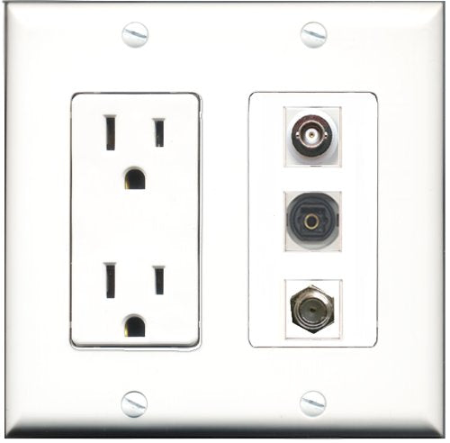 RiteAV - 15 Amp Power Outlet 1 Port Coax 1 Port Toslink 1 Port BNC Decorative Wall Plate