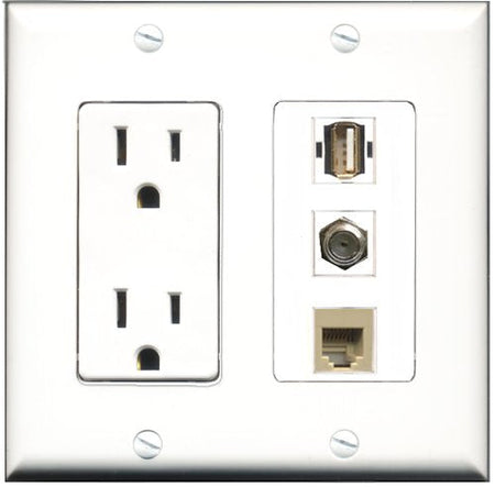 RiteAV - 15 Amp Power Outlet 1 Port Coax 1 Port USB A-A 1 Port Phone Beige Decorative Wall Plate