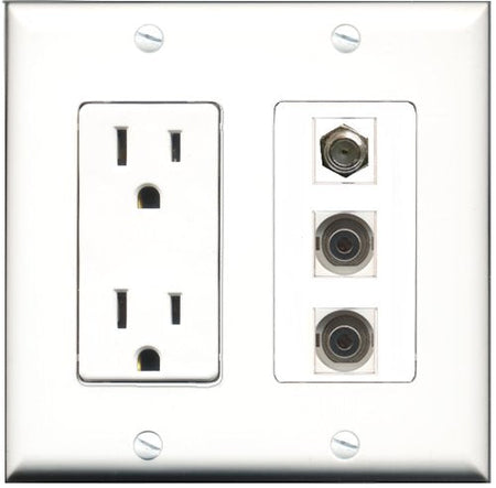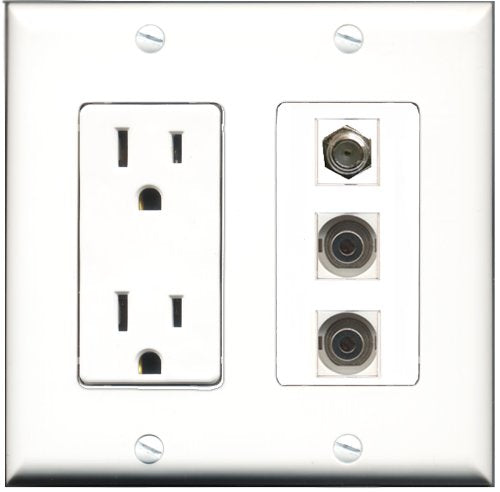 RiteAV - 15 Amp Power Outlet 1 Port Coax 2 Port 3.5mm Decorative Wall Plate