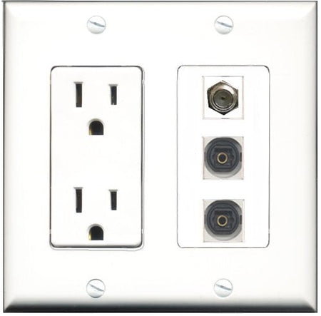 RiteAV - 15 Amp Power Outlet 1 Port Coax 2 Port Toslink Decorative Wall Plate