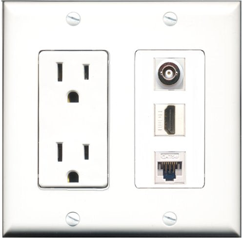 RiteAV - 15 Amp Power Outlet 1 Port HDMI 1 Port BNC 1 Port Cat5e Ethernet White Decorative Wall Plate