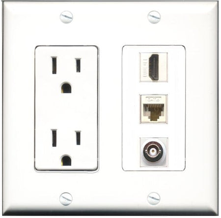RiteAV - 15 Amp Power Outlet 1 Port HDMI 1 Port BNC 1 Port Cat6 Ethernet Ethernet White Decorative Wall Plate