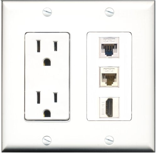 RiteAV - 15 Amp Power Outlet 1 Port HDMI 1 Port Cat5e Ethernet White 1 Port Cat6 Ethernet Ethernet White Decorative Wall Plate