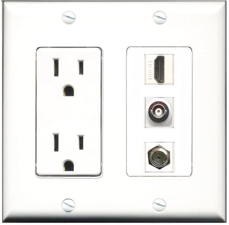 RiteAV - 15 Amp Power Outlet 1 Port HDMI 1 Port Coax 1 Port BNC Decorative Wall Plate
