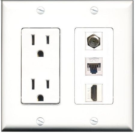 RiteAV - 15 Amp Power Outlet 1 Port HDMI 1 Port Coax 1 Port Cat5e Ethernet White Decorative Wall Plate