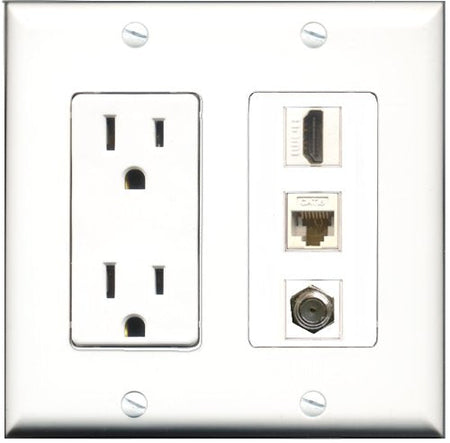 RiteAV - 15 Amp Power Outlet 1 Port HDMI 1 Port Coax 1 Port Cat6 Ethernet Ethernet White Decorative Wall Plate
