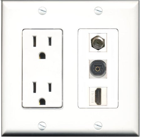 RiteAV - 15 Amp Power Outlet 1 Port HDMI 1 Port Coax 1 Port Toslink Decorative Wall Plate