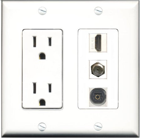RiteAV - 15 Amp Power Outlet 1 Port HDMI 1 Port Coax 1 Port Toslink Decorative Wall Plate