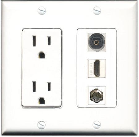 RiteAV - 15 Amp Power Outlet 1 Port HDMI 1 Port Coax 1 Port Toslink Decorative Wall Plate