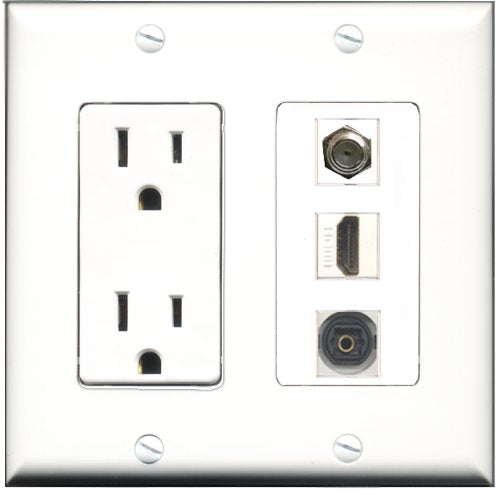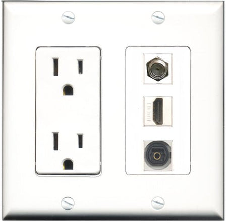 RiteAV - 15 Amp Power Outlet 1 Port HDMI 1 Port Coax 1 Port Toslink Decorative Wall Plate