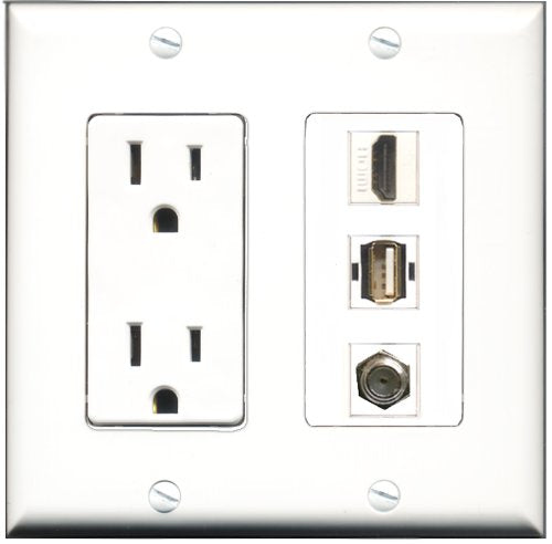 RiteAV - 15 Amp Power Outlet 1 Port HDMI 1 Port Coax 1 Port USB A-A Decorative Wall Plate