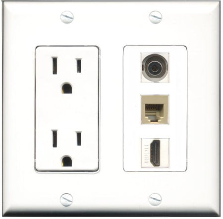 RiteAV - 15 Amp Power Outlet 1 Port HDMI 1 Port Phone Beige 1 Port 3.5mm Decorative Wall Plate