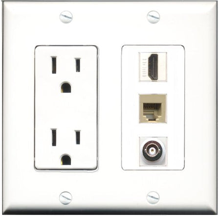 RiteAV - 15 Amp Power Outlet 1 Port HDMI 1 Port Phone Beige 1 Port BNC Decorative Wall Plate
