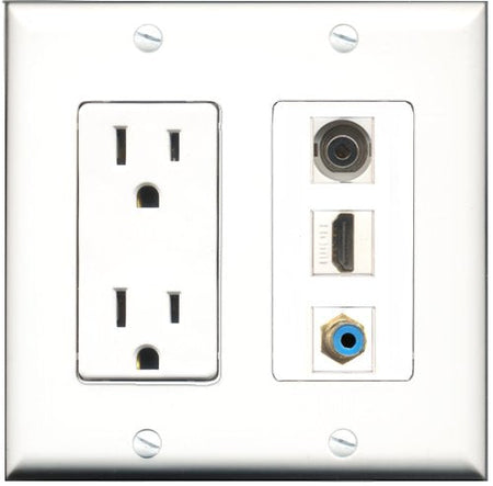 RiteAV - 15 Amp Power Outlet 1 Port HDMI 1 Port RCA Blue 1 Port 3.5mm Decorative Wall Plate