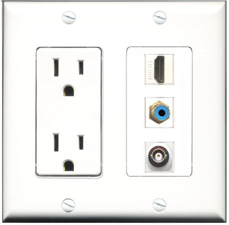 RiteAV - 15 Amp Power Outlet 1 Port HDMI 1 Port RCA Blue 1 Port BNC Decorative Wall Plate