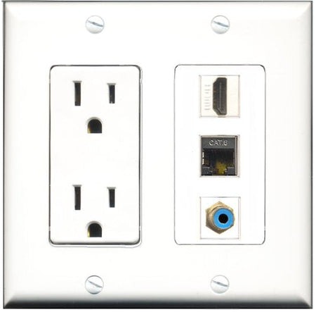 RiteAV - 15 Amp Power Outlet 1 Port HDMI 1 Port RCA Blue 1 Port Shielded Cat6 Ethernet Ethernet Decorative Wall Plate