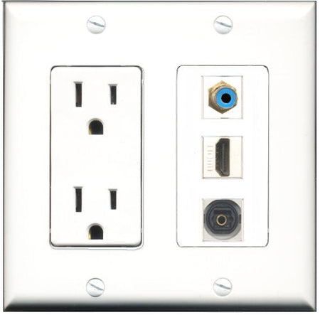 RiteAV - 15 Amp Power Outlet 1 Port HDMI 1 Port RCA Blue 1 Port Toslink Decorative Wall Plate