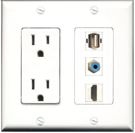 RiteAV - 15 Amp Power Outlet 1 Port HDMI 1 Port RCA Blue 1 Port USB A-A Decorative Wall Plate