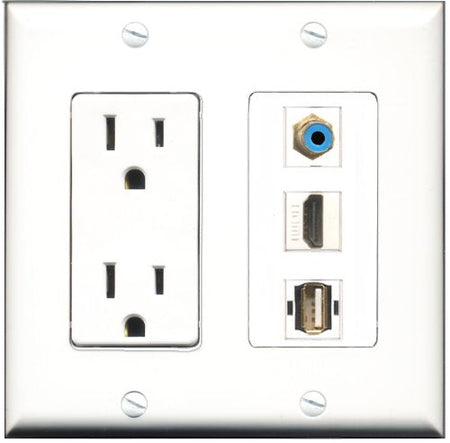 RiteAV - 15 Amp Power Outlet 1 Port HDMI 1 Port RCA Blue 1 Port USB A-A Decorative Wall Plate