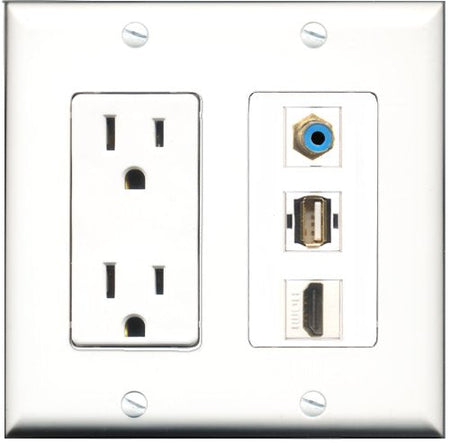 RiteAV - 15 Amp Power Outlet 1 Port HDMI 1 Port RCA Blue 1 Port USB A-A Decorative Wall Plate