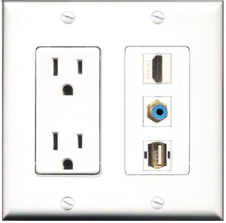 RiteAV - 15 Amp Power Outlet 1 Port HDMI 1 Port RCA Blue 1 Port USB A-A Decorative Wall Plate