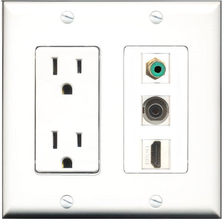RiteAV - 15 Amp Power Outlet 1 Port HDMI 1 Port RCA Green 1 Port 3.5mm Decorative Wall Plate
