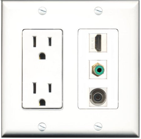 RiteAV - 15 Amp Power Outlet 1 Port HDMI 1 Port RCA Green 1 Port 3.5mm Decorative Wall Plate